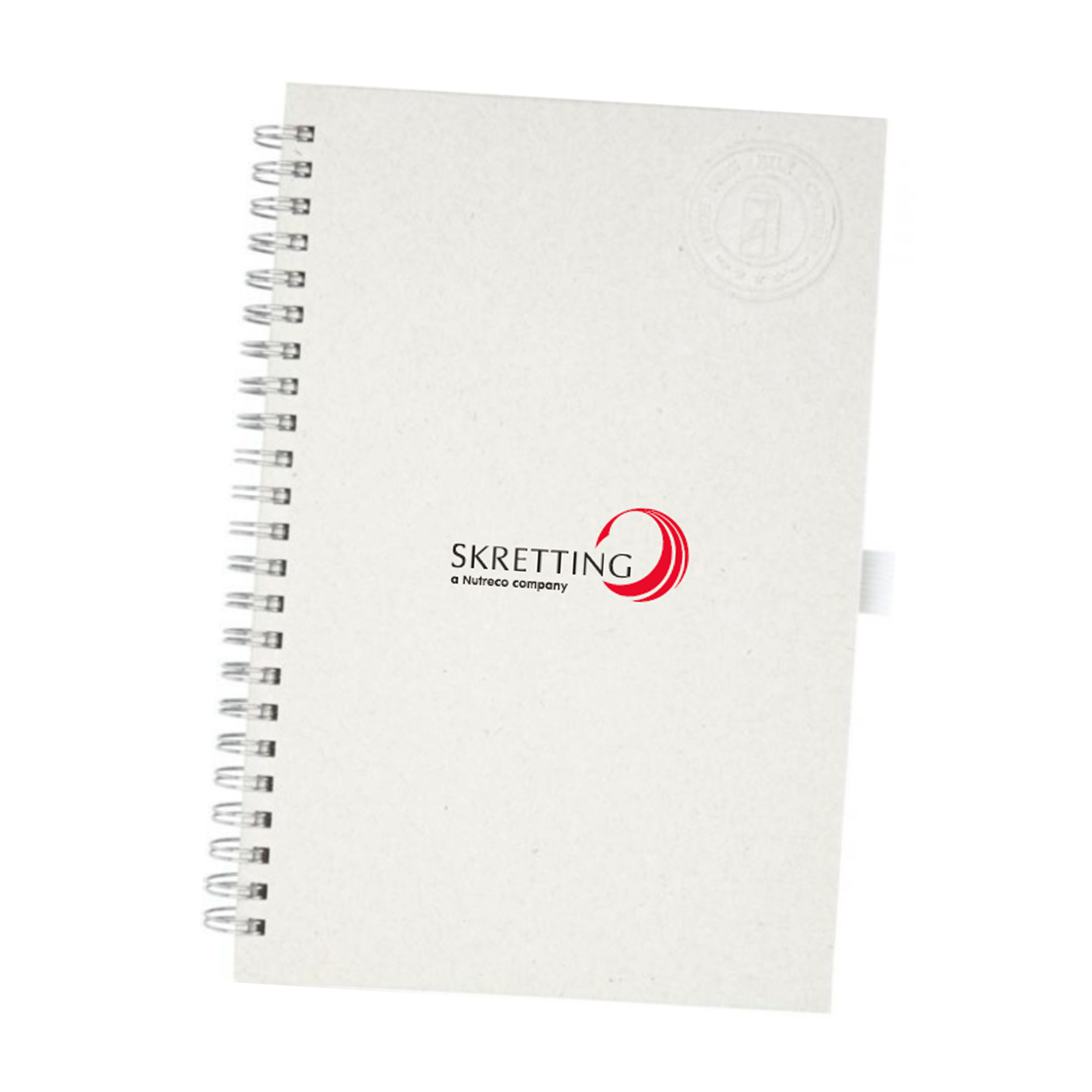 A5 spiral notatbok med 70 ark 80 g/m² linjert papir, laget av resirkulerte melkekartonger (opptil 70 %).