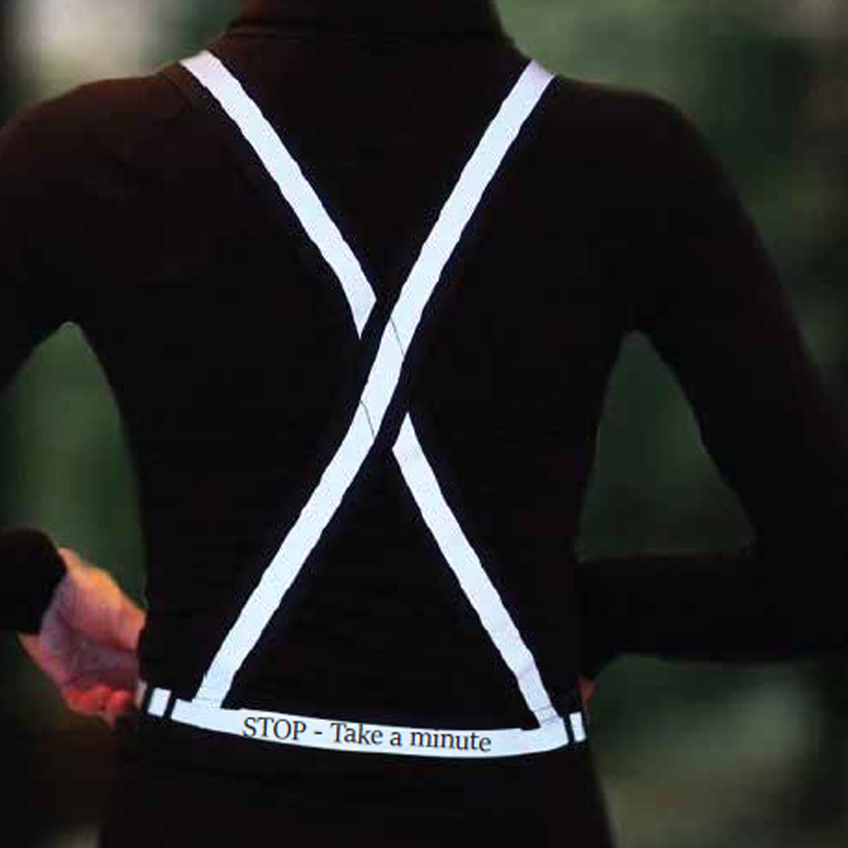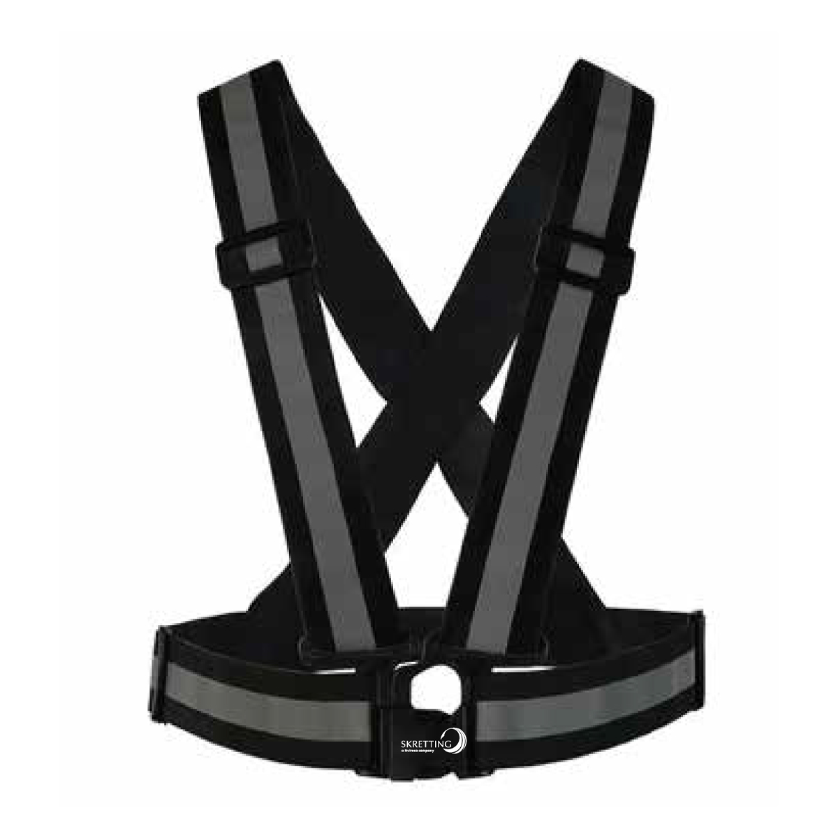 Reflekssele i farge sort med spenne foran. Logo trykk på spennen og tekst bak
